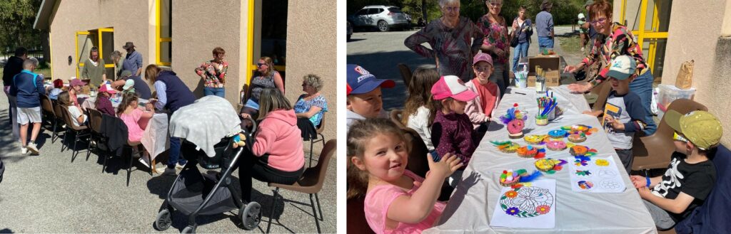La magie s’est prolongée à travers des ateliers créatifs : décoration de rondins de bois, délicatement préparés par Denis Servel, et coloriages qui ont su éveiller l’imagination de chacun.
