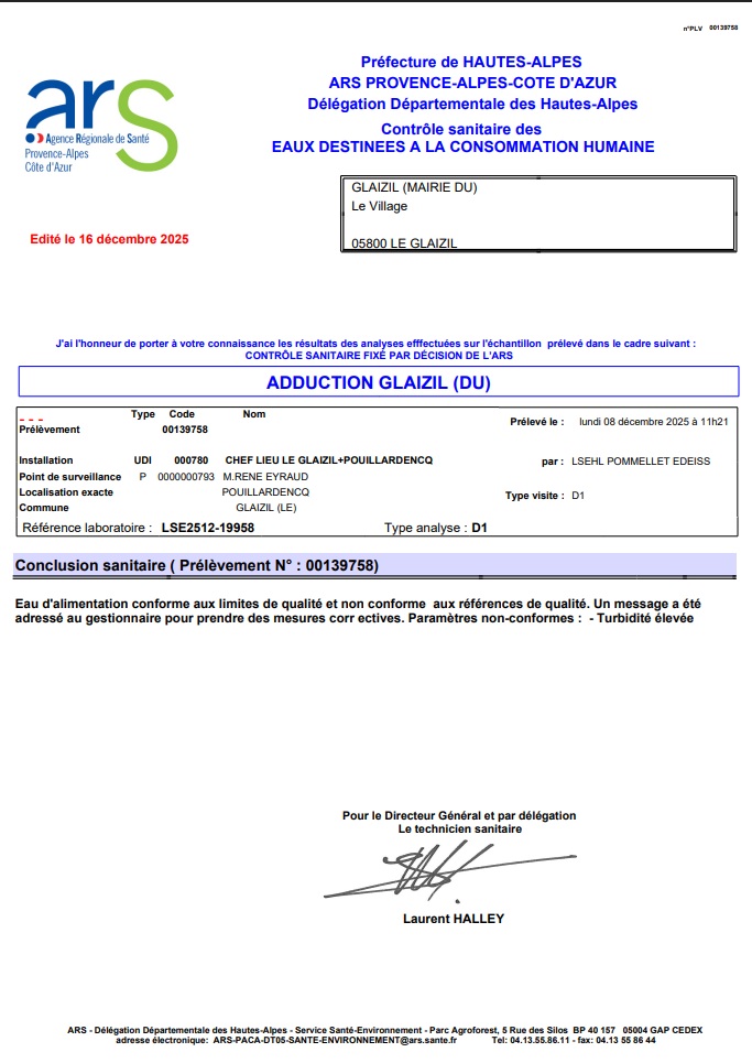 CONTROLE DE L’EAU MOIS DE DÉCEMBRE Home / News / CONTROLE DE L’EAU MOIS DE DÉCEMBRE Résultats complets