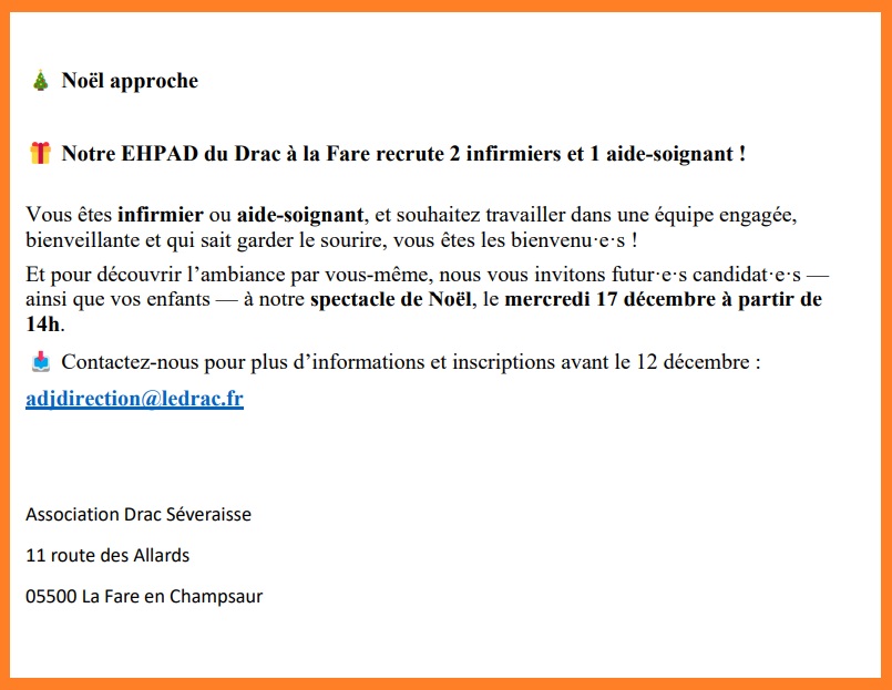 EMPLOI EHPAD LA FARE EN CHAMPSAUR