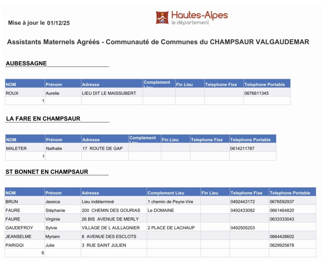 LISTE DES ASSISTANTS MATERNELS MOIS DE DÉCEMBRE Home / News / LISTE DES ASSISTANTS MATERNELS MOIS DE DÉCEMBRE LISTE COMPLÈTE